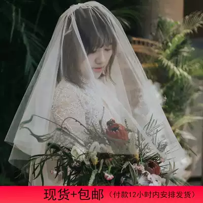 The bride's wedding certificate takes pictures of double-layer face-covering plain yarn short veil travel photography Korean combed net veil spot