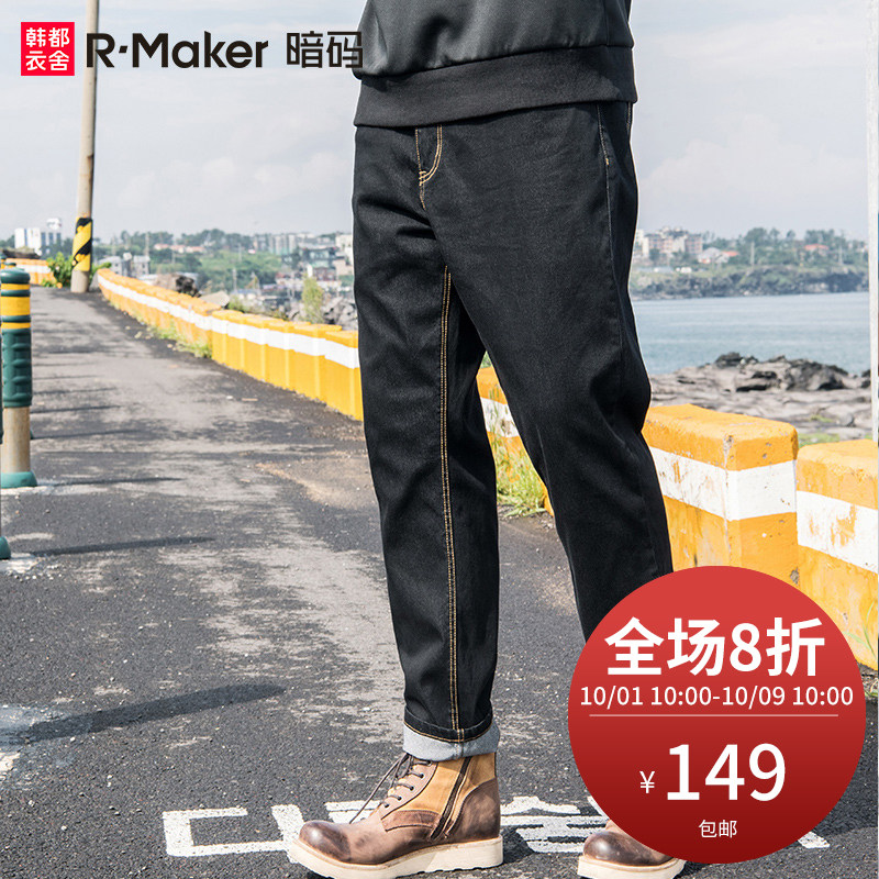 Large size men's clothing plus fat increase trend jeans autumn and winter loose fat small straight solid color elastic casual pants