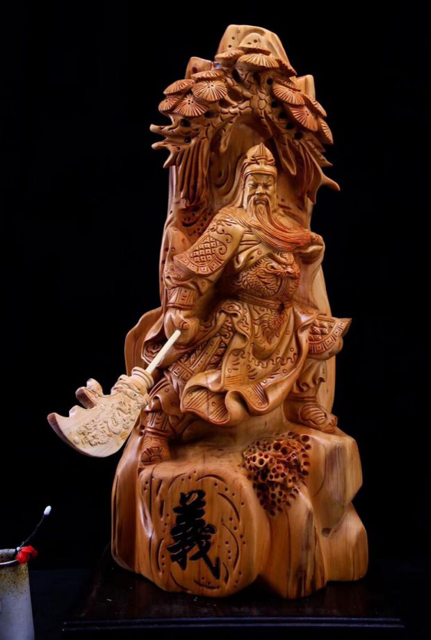 Cliff cypress root carving Chenhua material with shape decoration Guan Gongwu God of wealth Guan Erye wood carving Yi Thin Yuntian craft gift decoration