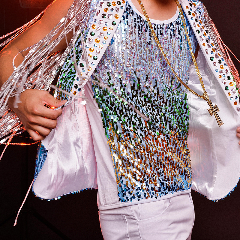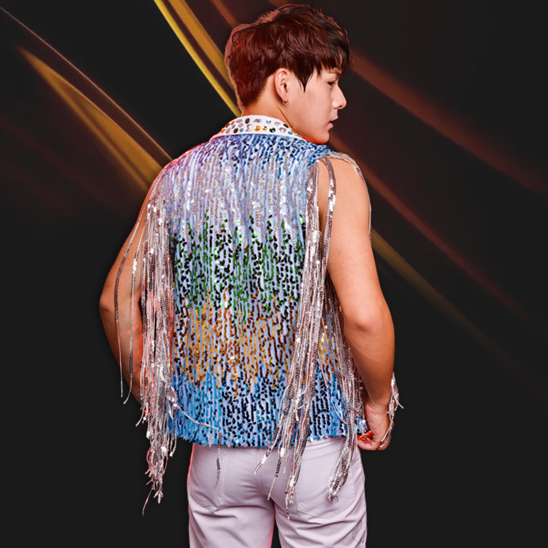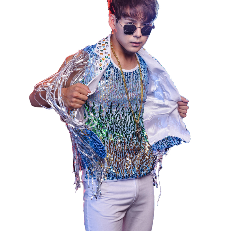 Tide male singer nightclub bar drum drum performing clothepersonality stream Sulu chip crystal drill horse pants suit