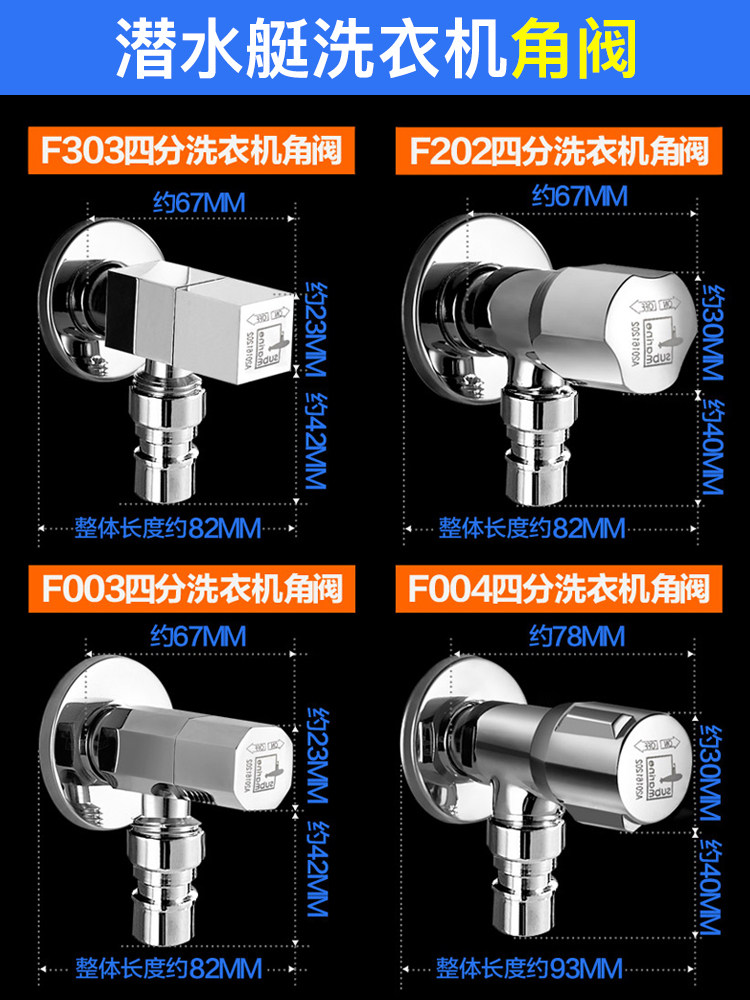 Fine copper 4 points washing machine angle valve tap F202 (space saving) fine copper 4 points washing machine angle valve tap F003 (saving space) blue fine copper 4 points washing machine angle valve tap F30