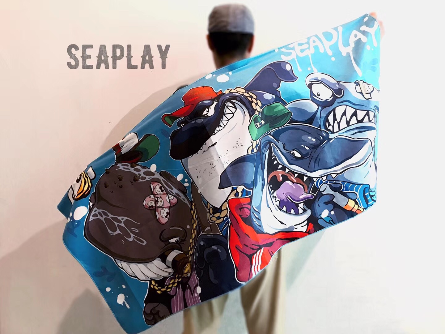 SEAPLAY Microfiber Speed Dry Towel Bath Towels Quick Dry Diving Surfing Swimming Sport Available Big Shark