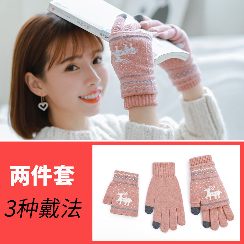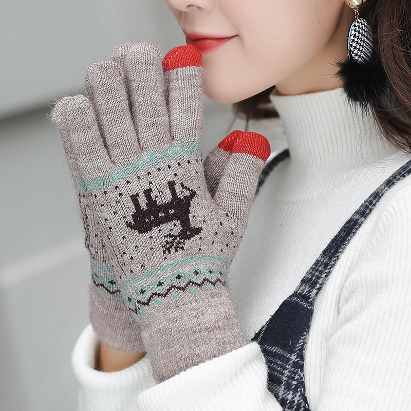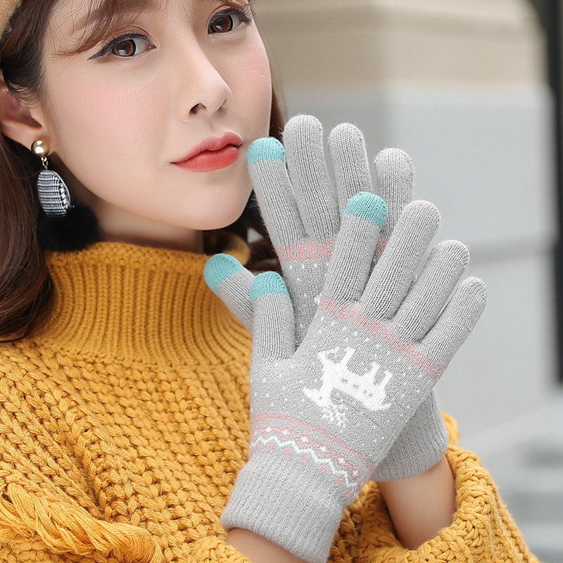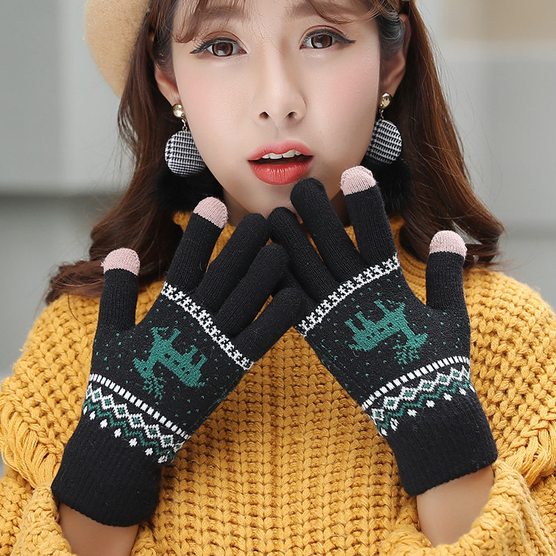 Touch screen gloves women's winter cute Korean version of students winter girls thick warm Christmas wool cycling with riding