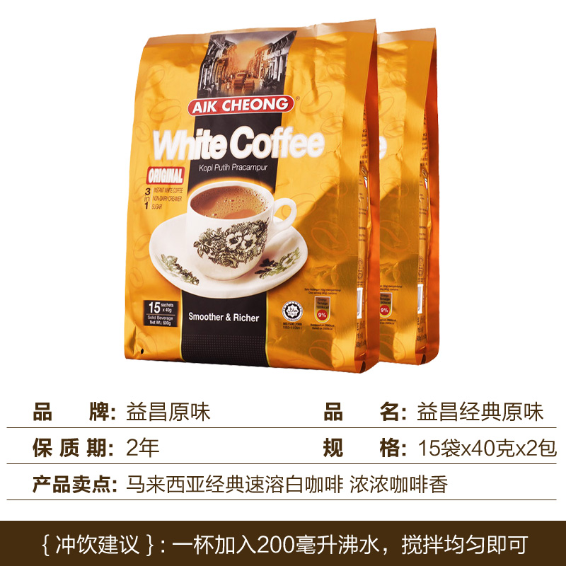 Malaysia Imports Yichang Old Street Three-in-One Original Instant White Coffee Bags 40g * 15 Bags 600g