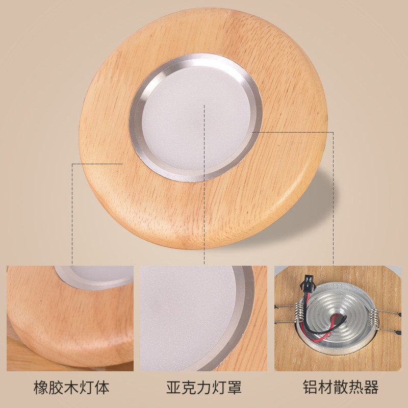 Nordic solid wood LED Downlight living room ceiling corridor aisle light recessed light bedroom home lamp