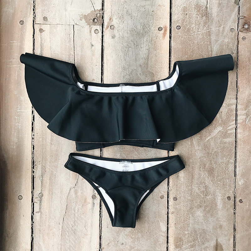 OceanMystery New Beach Black Lotus Leaf Two Piece Swimsuit Women's Conservative Hot Spring Bikini