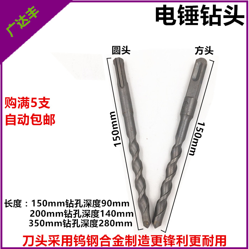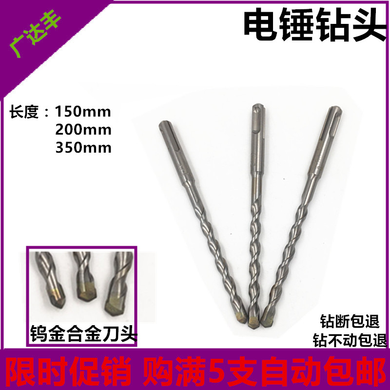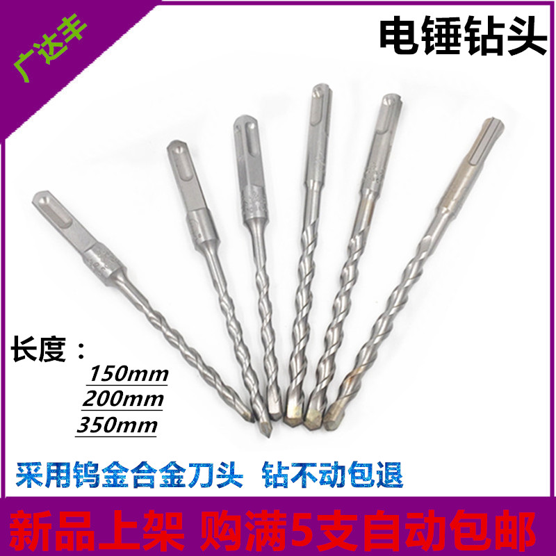 Electric hammer drill bit lengthened through the wall round handle two pits two grooves square handle four pits mixed mud wall soil cement impact drill