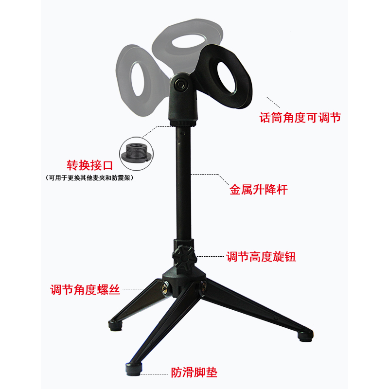 Aivillemic Desktop Bracket Microphone Metal Tripod Wired Wireless Microphone Holder