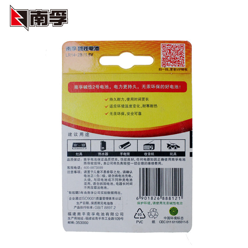 Nanfu II Battery C Type LR14 Durably Alkaline 2 Number of bread Superman Fisher Toys 4 grains 1 5V