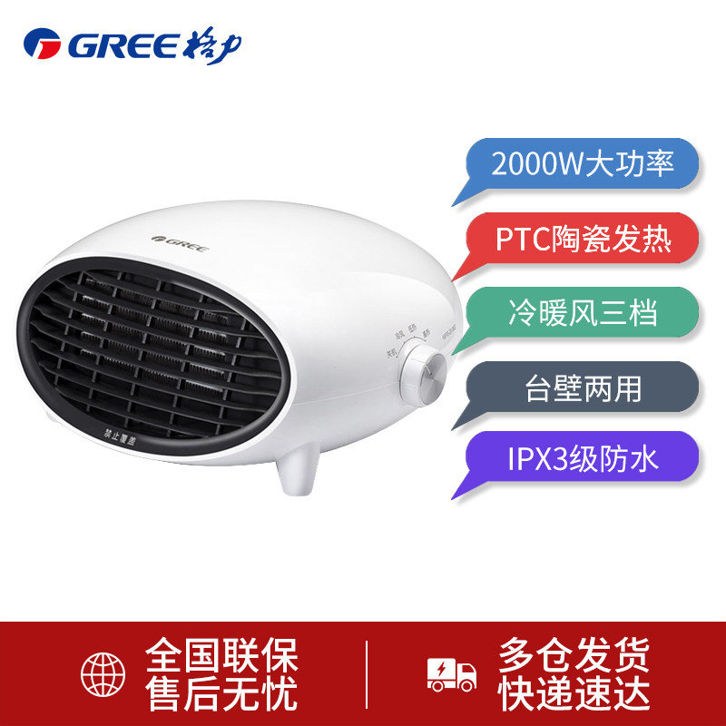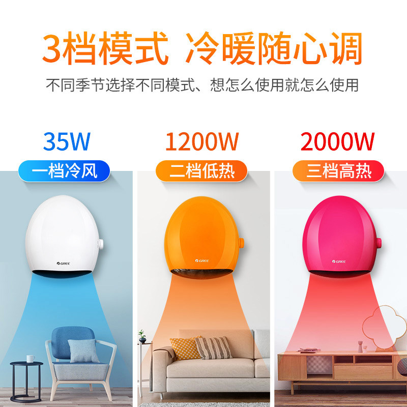 Gree Heating Fan Household Small Wall-mounted Heating Fan Bathroom Waterproof Energy Saving Speed Heating Heating Gas