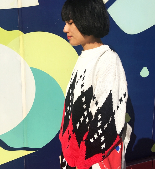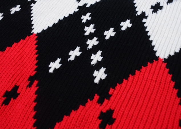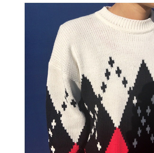 The United States has enough super-sharp red and white lattice geometric small lantern sleeve sweater