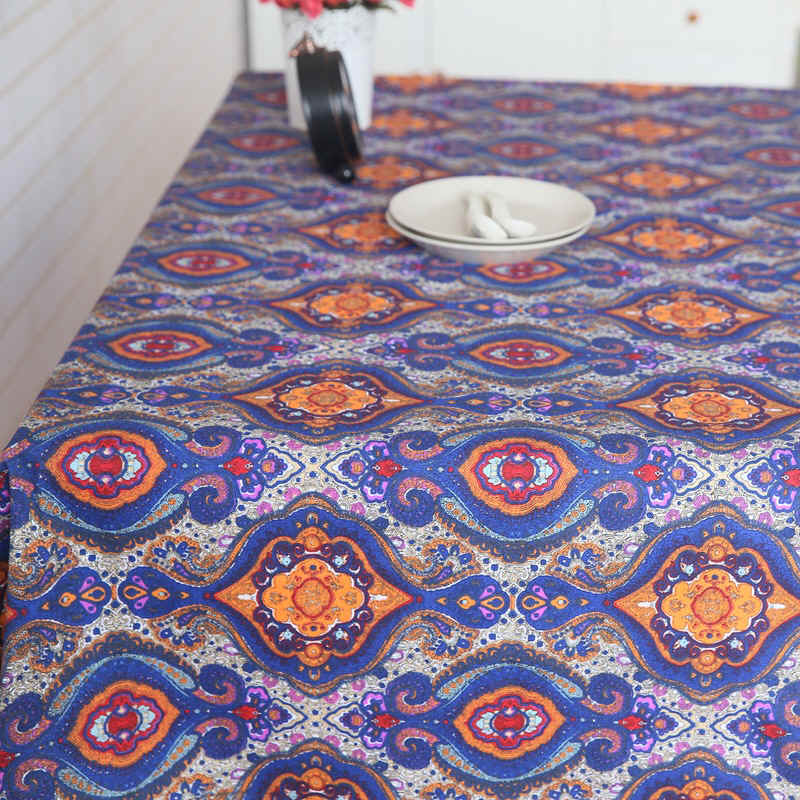 Mediterranean cotton linen table cloth tea table cloth anti-dust cover cloth square hotel ethnic wind table budding to do