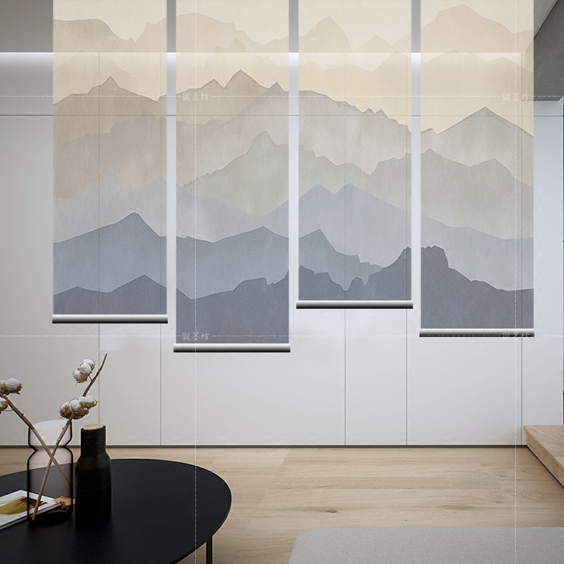 Chinese soft partition hanging cloth curtain screen Bedroom living room entrance semi-transparent hanging screen roller curtain-mountains and mountains
