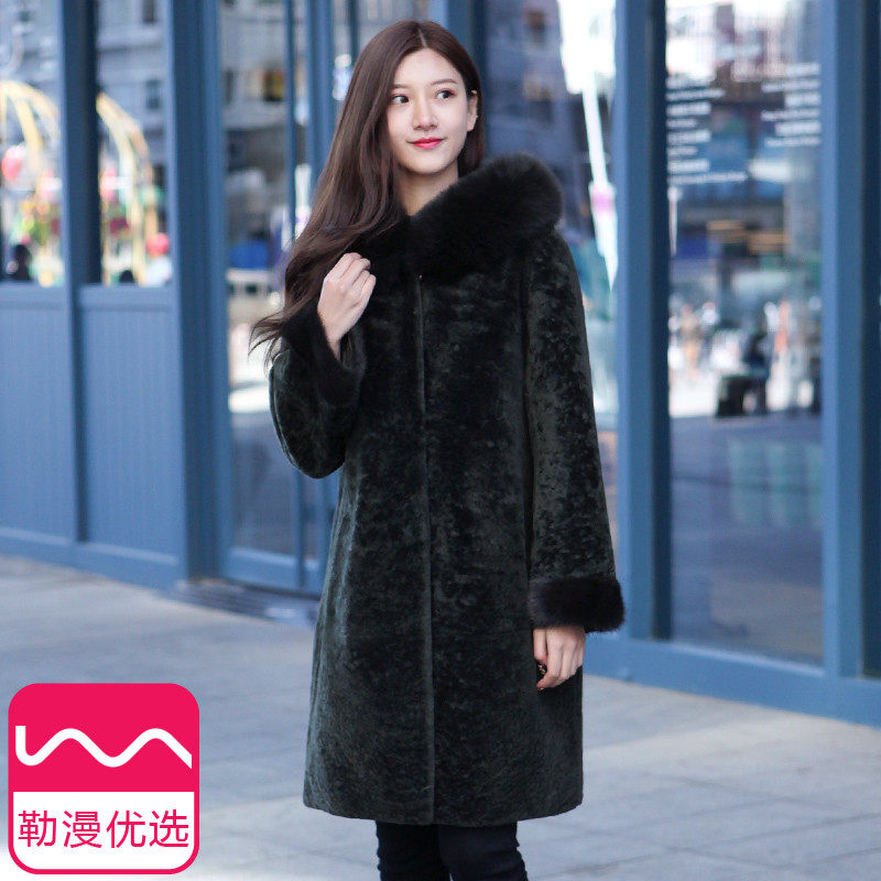 Leather hair one women's coat 2021 Winter new Haining cashmere coat medium and long version of lamb fur