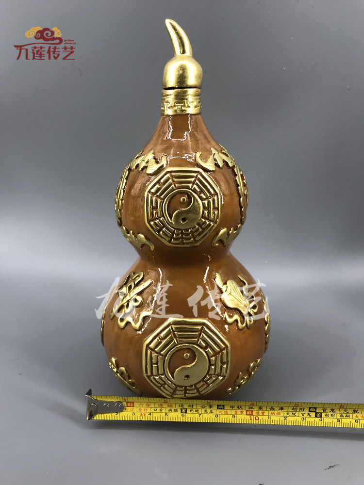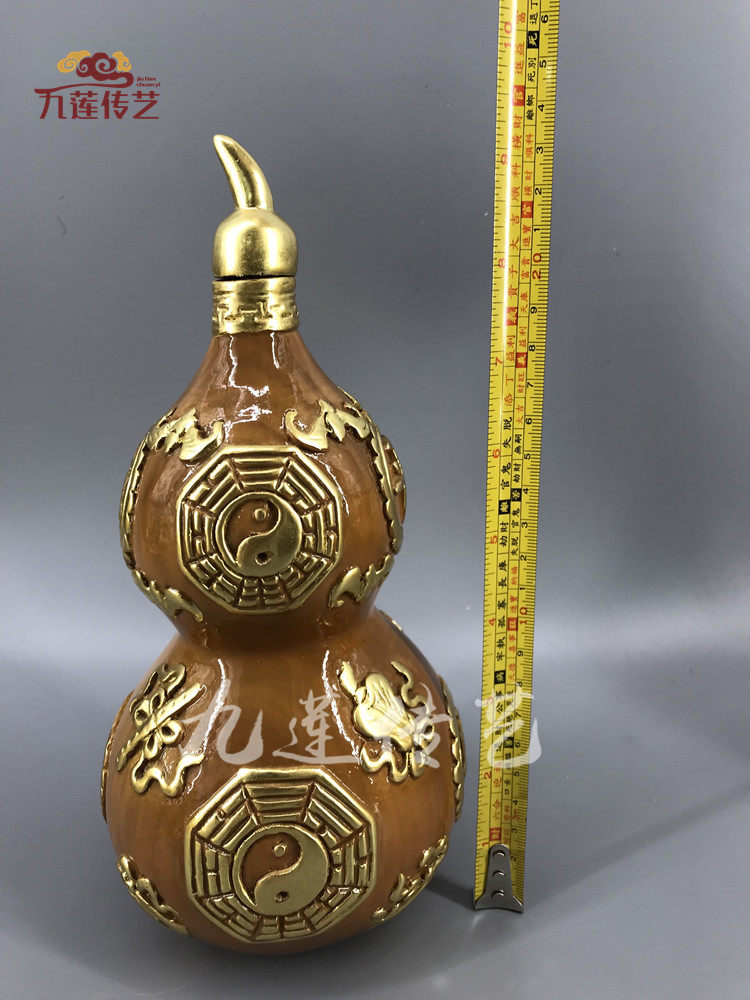Wood carve Gourd Taoist idol supplies Lucky Jinbao Town house Bao'an Camphor wood hand-carved nine lotus wood carve