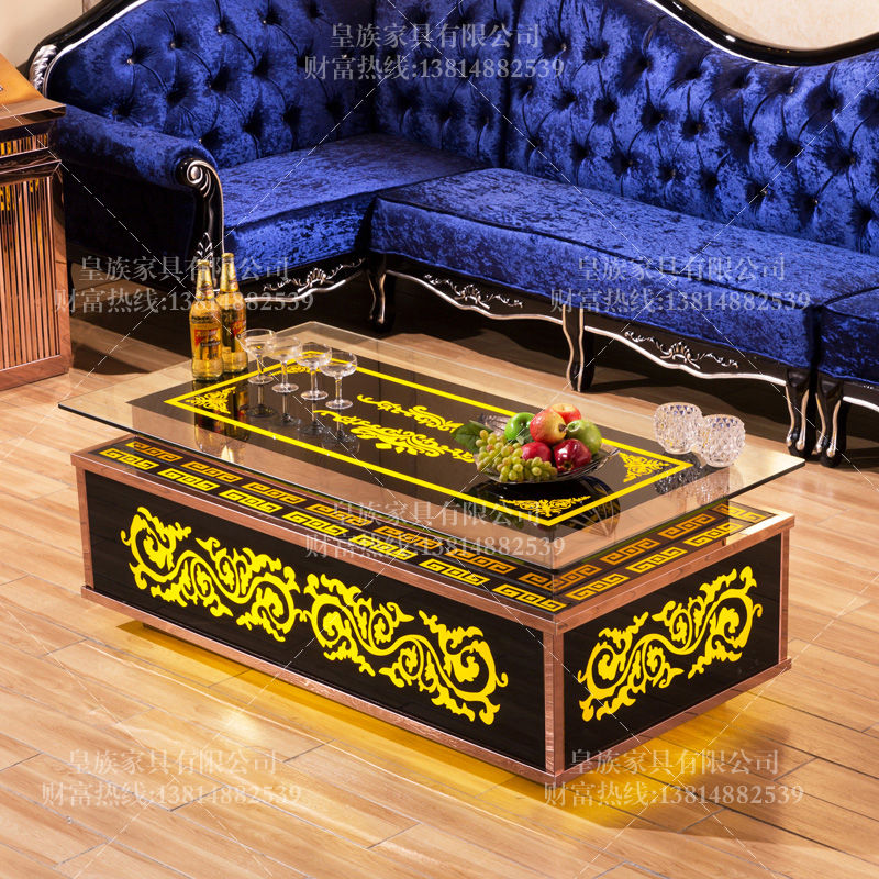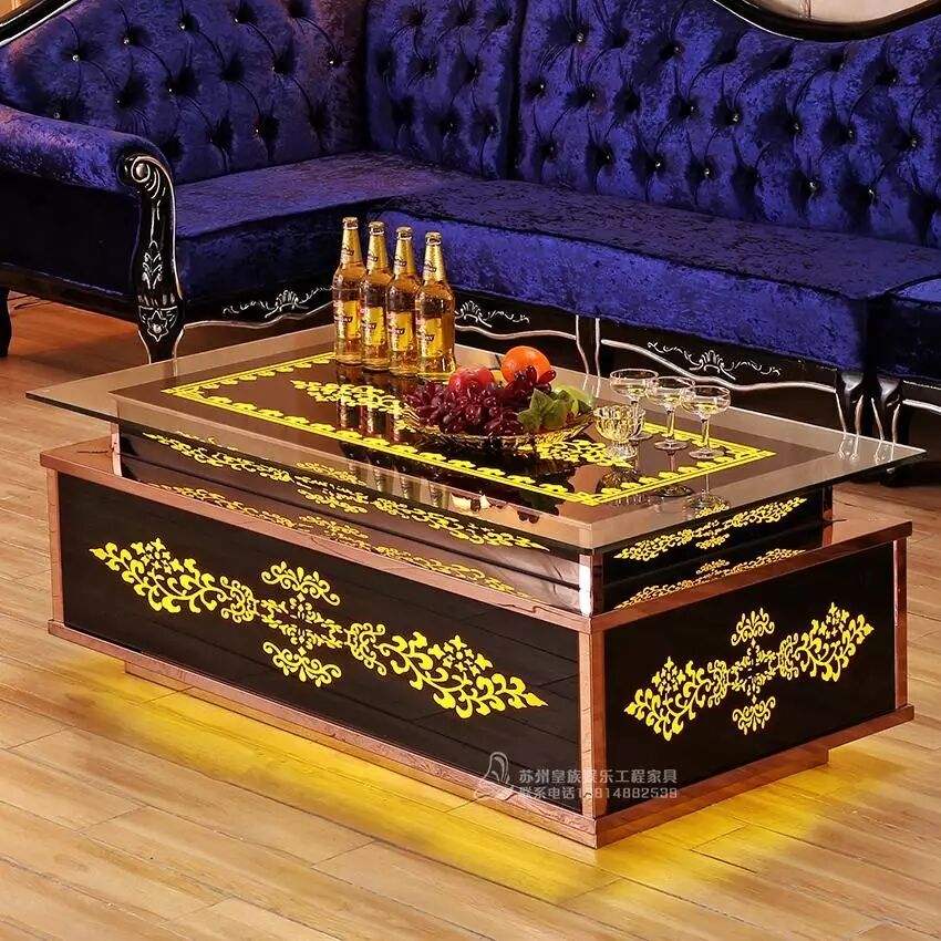 KTV coffee table box luminous tea table stainless steel bar table tempered glass square tea table volume seller KTV customization