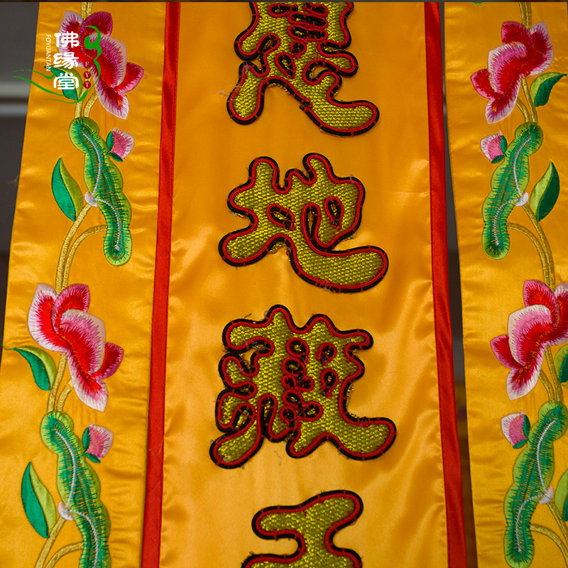 Temple Buddha hall hanging flag 2 meters convex word floating word Buddha flag lotus flag 3 meters tide embroidered Guanyin long flag prayer flag custom flag