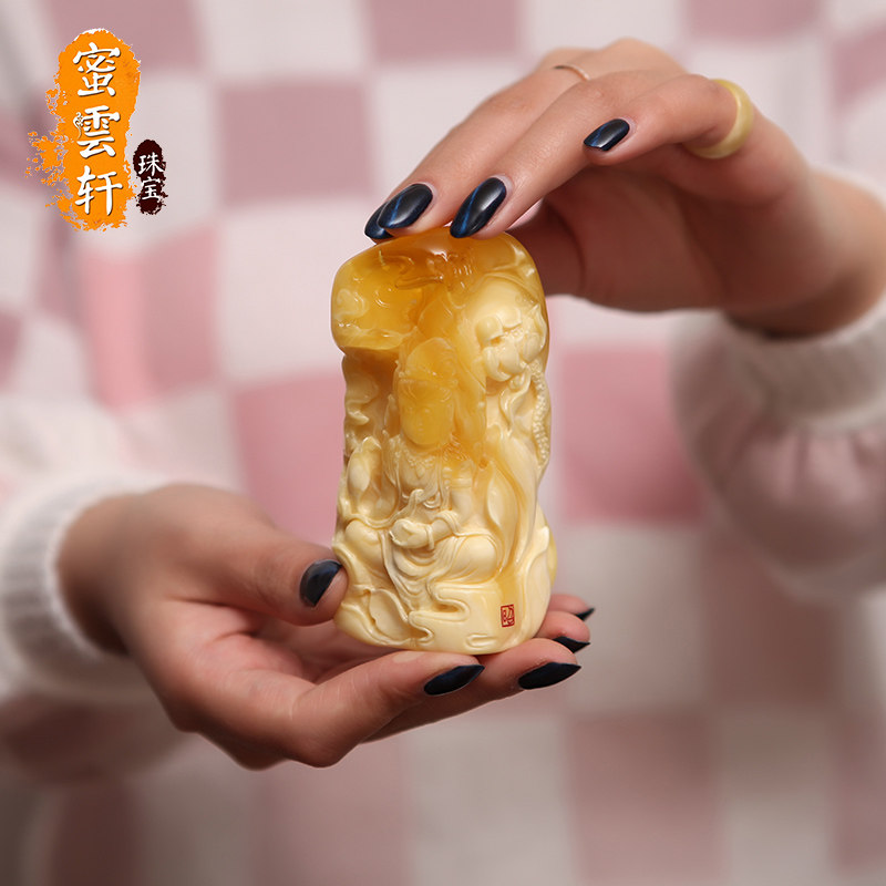 Natural amber old beeswax pendant water drops safe buckle no matter card necklace women's sweater chain 108 Buddha beads live broadcast
