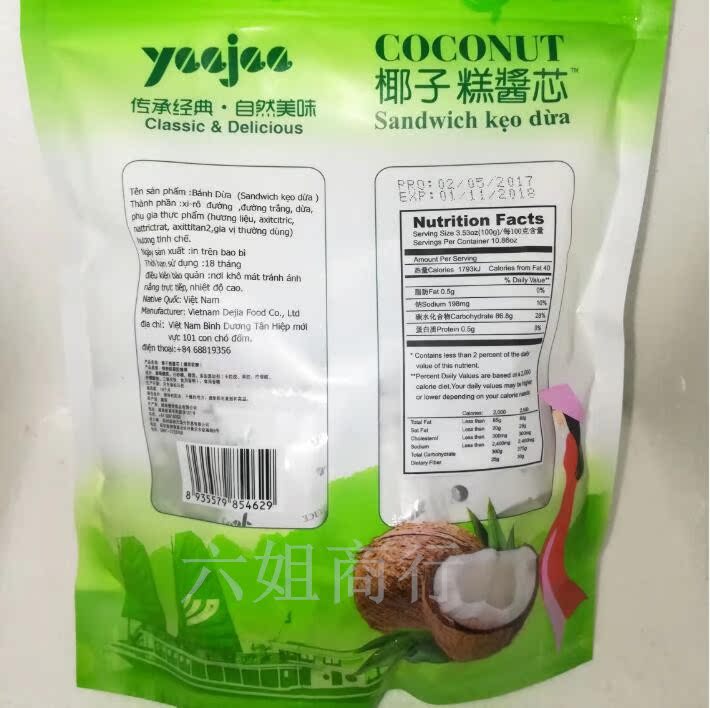 Multi-province Vietnam Imports of coconut cake Jam Core Popcorn Soft Sugar 308g Pass Down Classic Nature Delicious