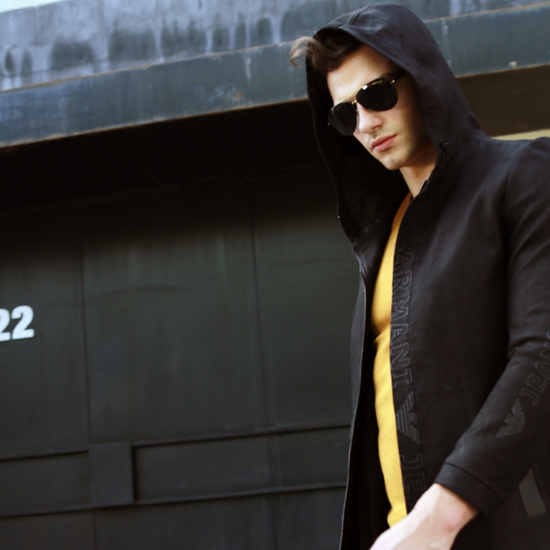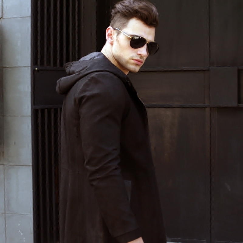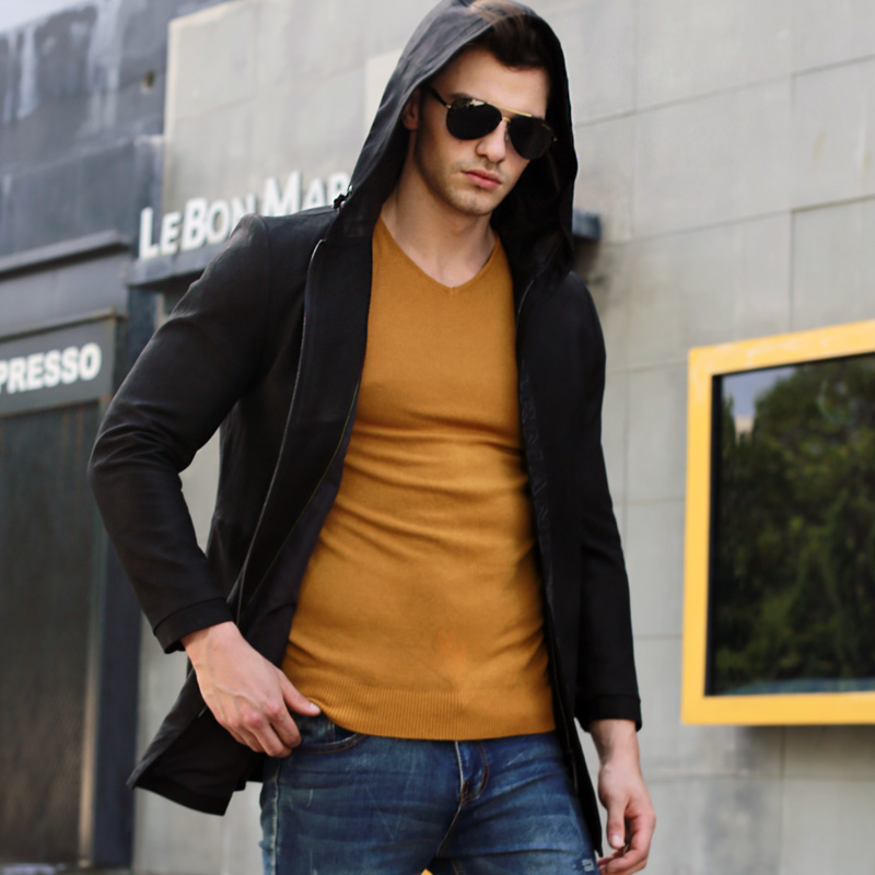 Luxurious New Imported Sheep Leather Leather Leather Clothing Jacket Fashion medium Long version Lianhood leather windsuit Youth handsome