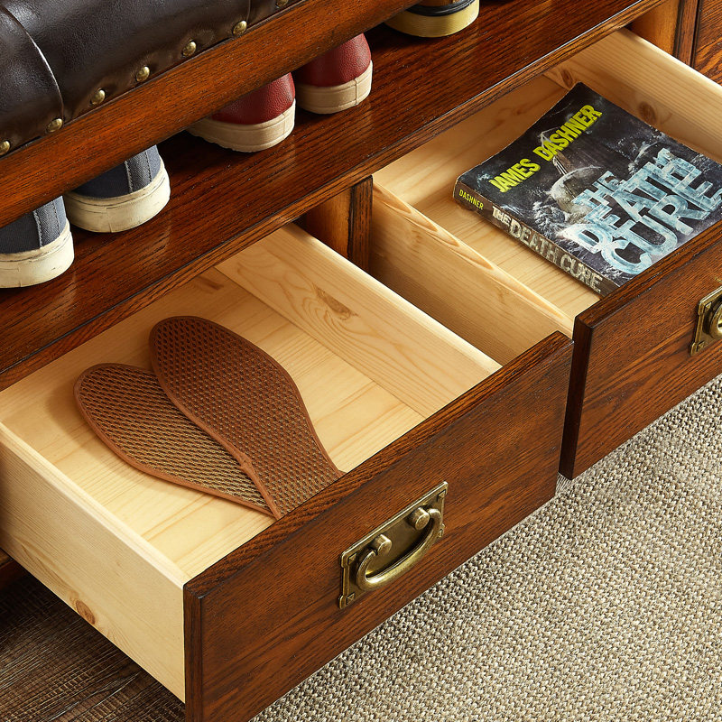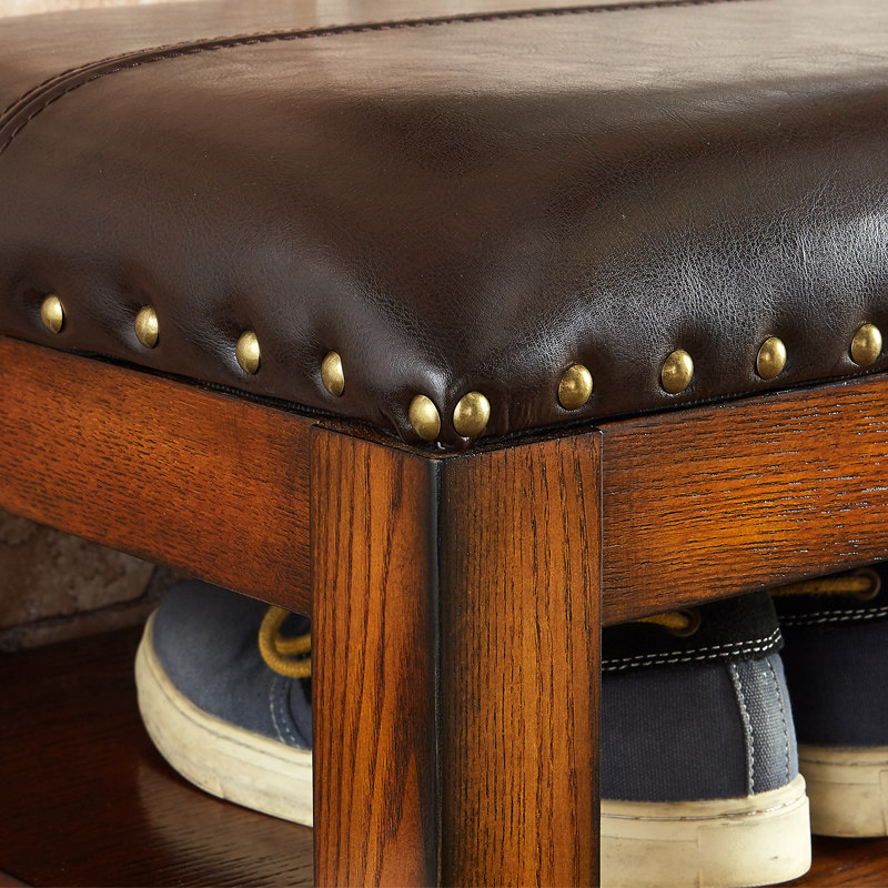 Hood American Solid Wood Change Shoes Bench Shoe Cabinet Genuine Leather Ostyle Shoes storage stool Stool Door Hall accommodating stool Stool Bench G