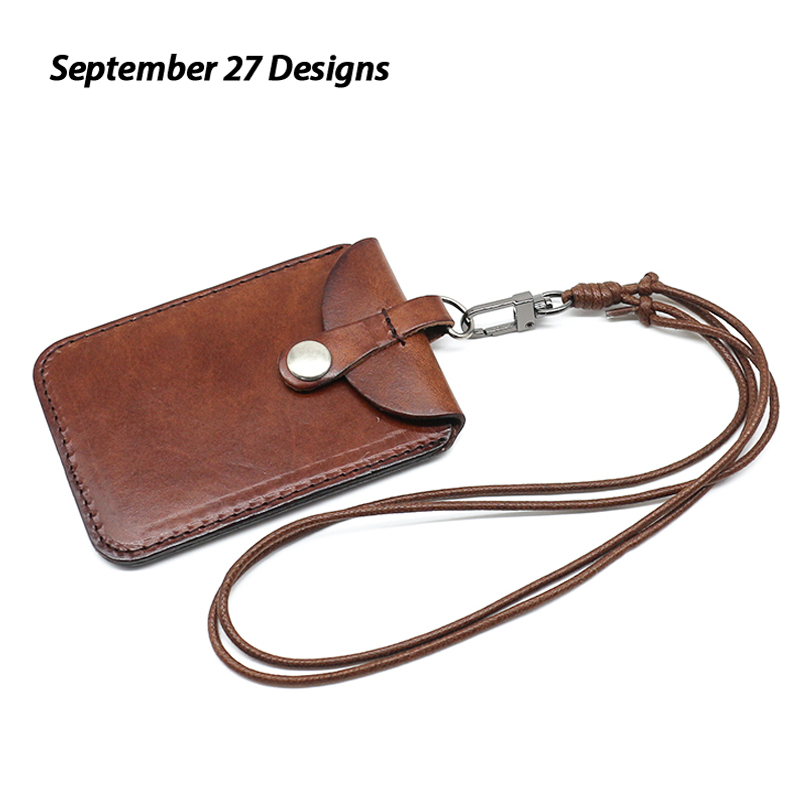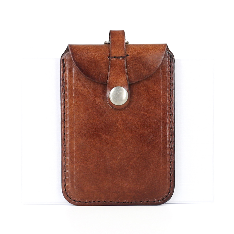Handmade vegetable tanned cowhide card sleeve retro leather neck hanging rope bus card bag mini badge portable coin purse tide
