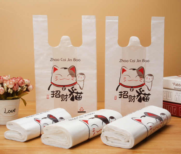 Lucky cat plastic bag packaging gift convenient bag wholesale cartoon delivery vest packing bag custom printed logo