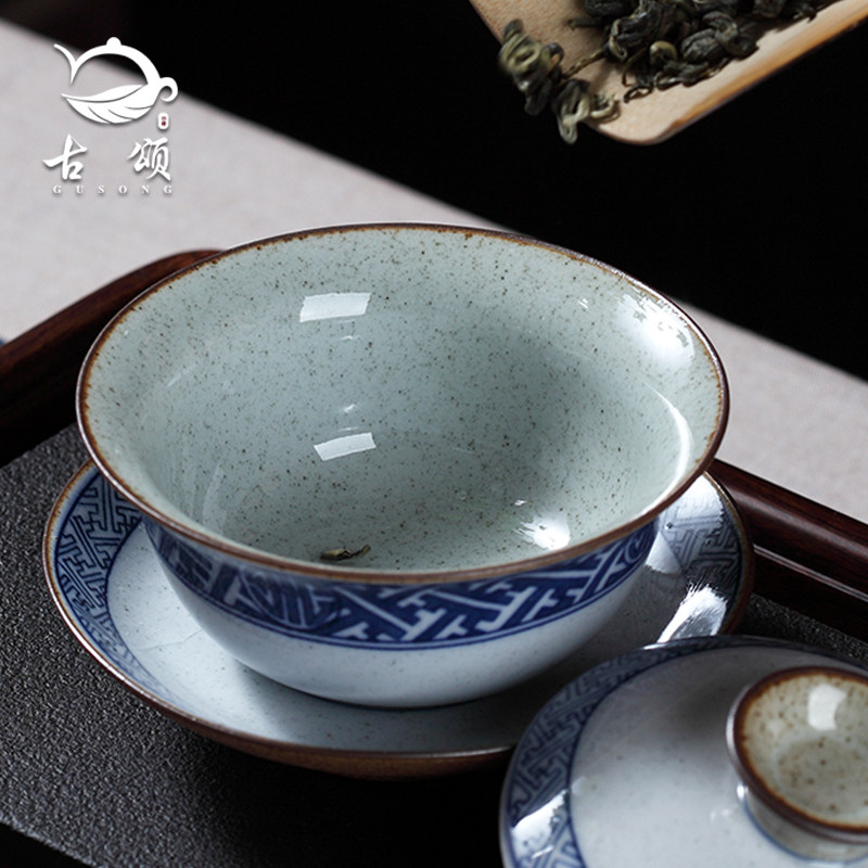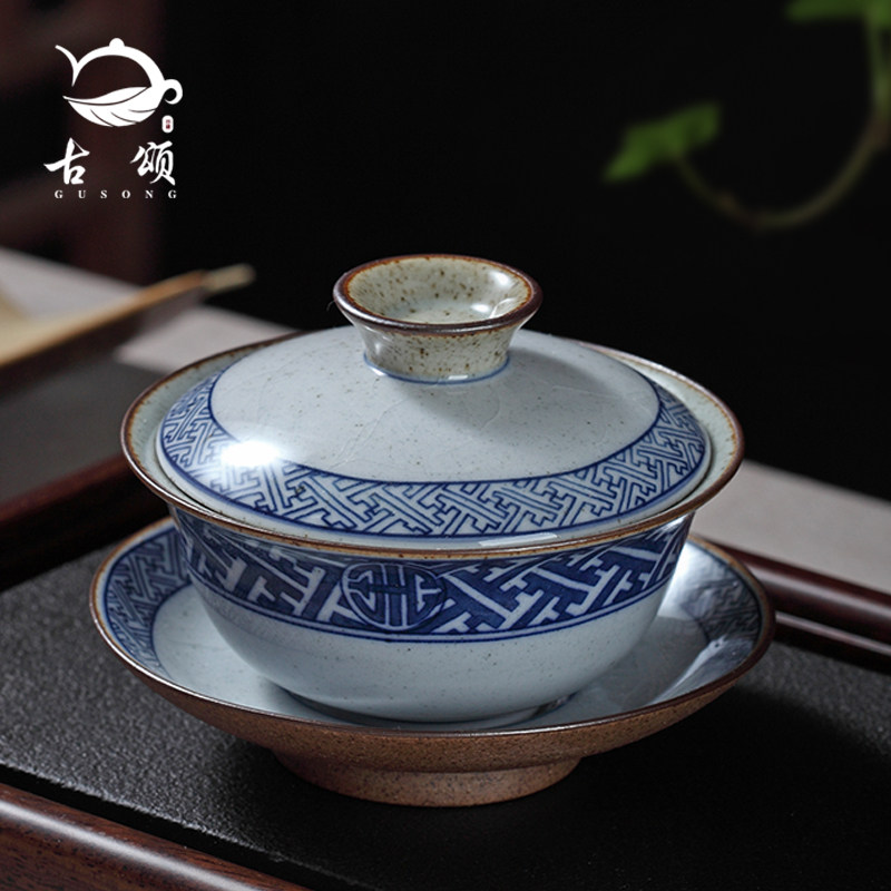 Ancient Praises Bowl Tea Cup Ceramic Large Number Single Triple Bubble Tea Bowl Kungfu Tea Set in Jingdezhen Qing flower Porcelain Hand Grip Pot