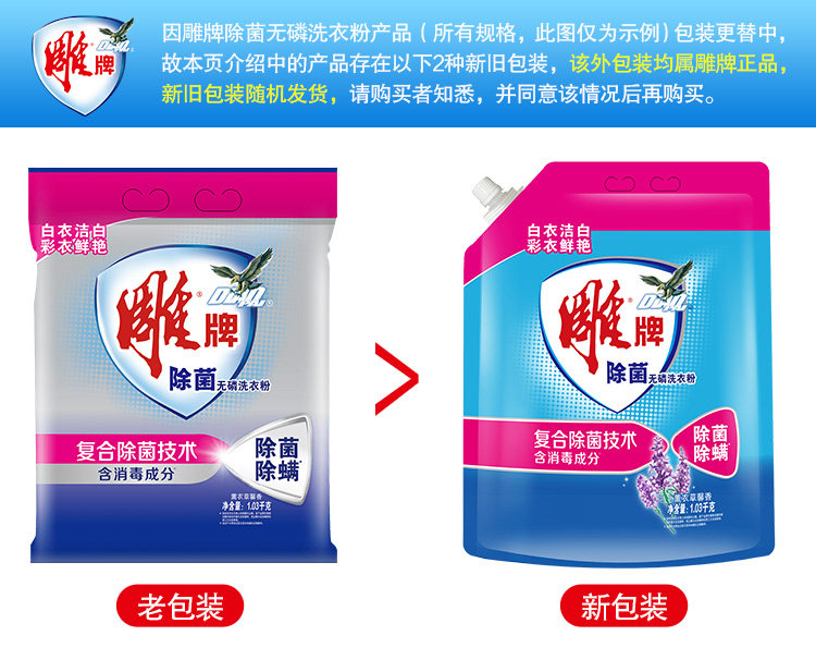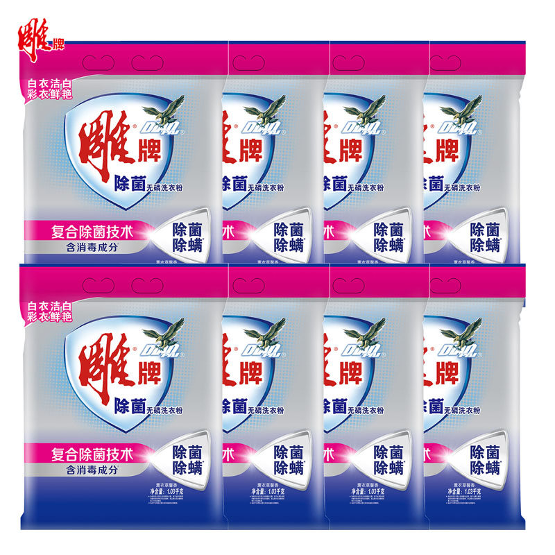 Carved brand washing powder 1 03kg*8 bags of lavender fragrance healthy sterilization and phosphorus-free effect to stain family pack