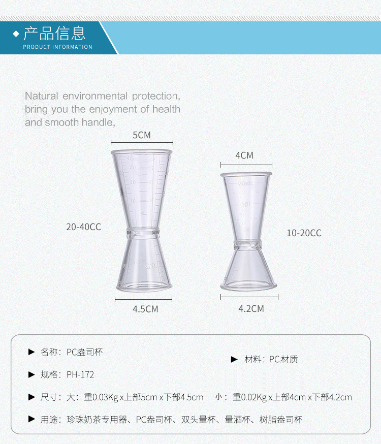 Milk tea special appliance PC resin ounces cup double head volume cup 20-40cc amount of wine glass milk tea shop tool