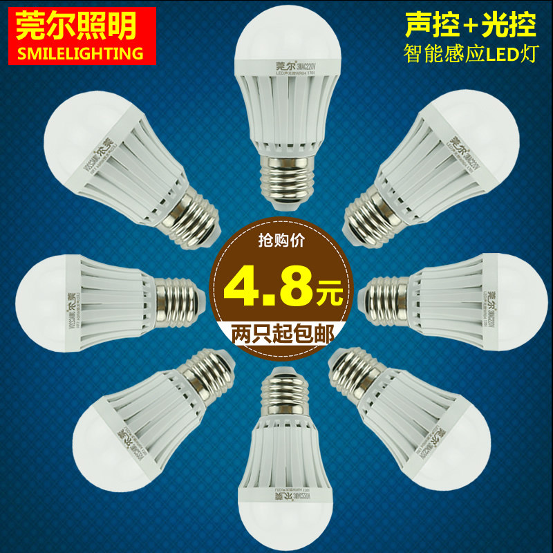 LED sound control light Corridor sound and light control integrated human body induction bulb Property corridor E27 screw mouth Household powder room