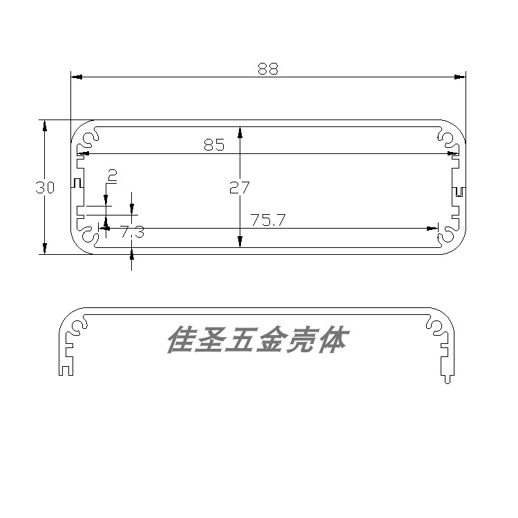 Aluminum alloy Aluminum extruded material Hand-held PCB shell Main shell shielded mobile power instrument shell Aluminum shell aluminum box 88x30
