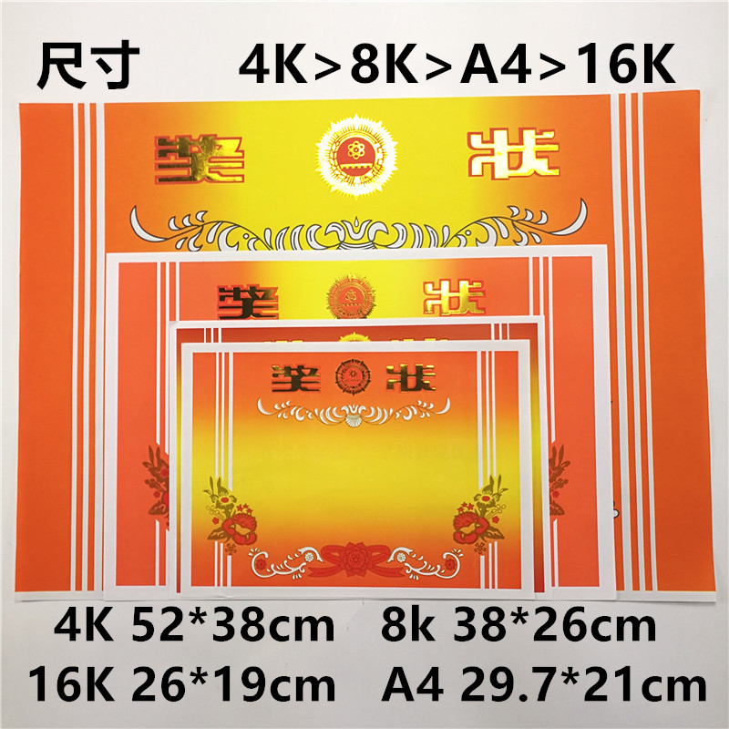 16K8K4KA4 classic certificate coated paper awards primary and secondary school prizes double adhesive paper can be customized printing