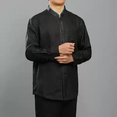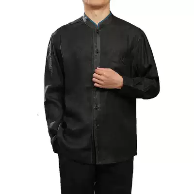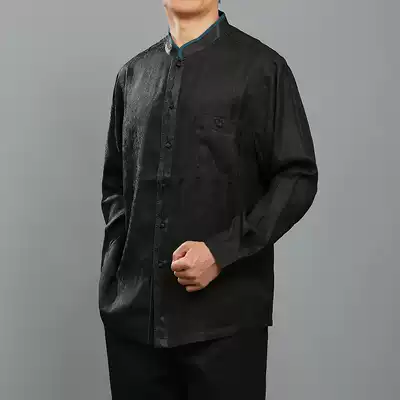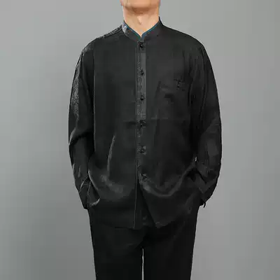 Baifulong high-end Xiangyun yarn men's Tang suit stand-up collar shirt Chinese style spring new men's silk long-sleeved shirt