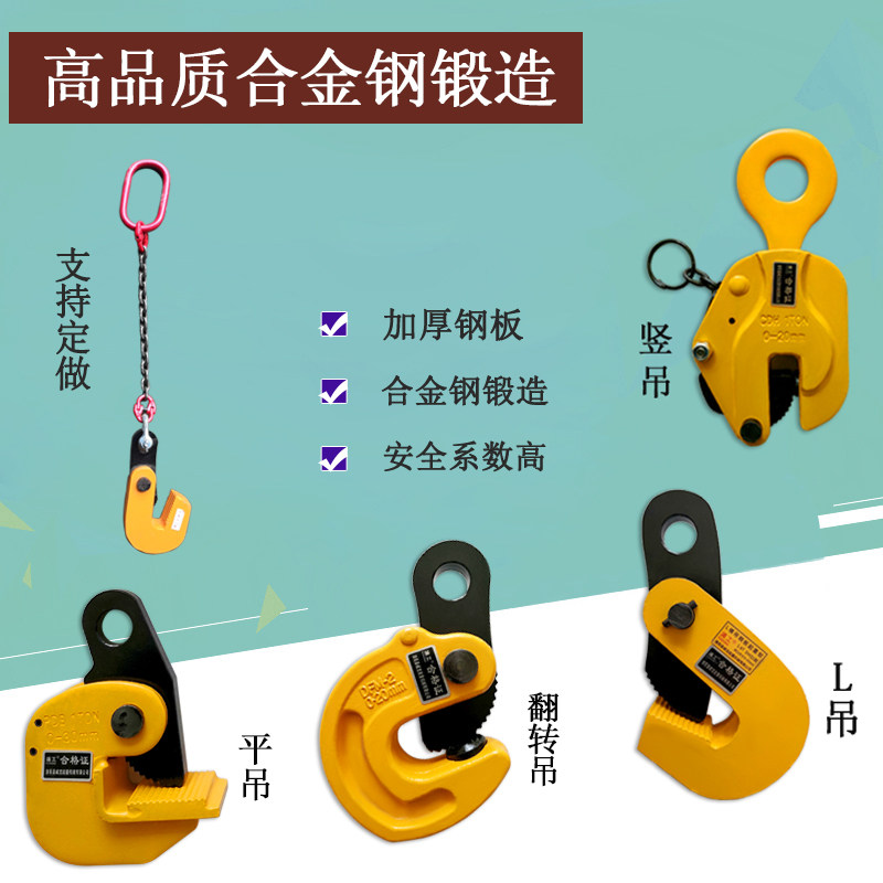 L-type lifting coincident gold and steel hanging pliers Die forging horizontal hanging vertical hanging flat hanging pliers Steel plate pliers clamps pliers rigging hooks 1T 5T