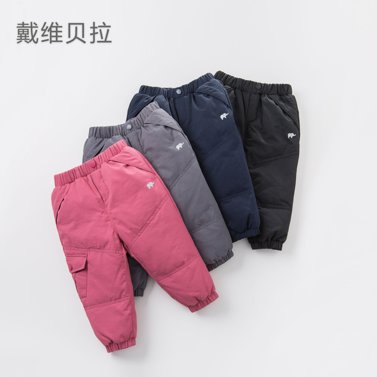 Davibella Boy Girl Baby Pants Winter White Duck Suede Children Long Pants Warm And Thickened Down Pants Outwear