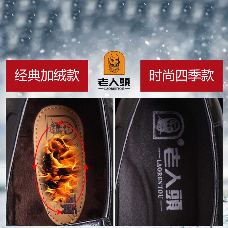 Old man's scalp shoes men's winter leather warm plus velvet cotton business formal clothes to increase the height of casual middle-aged dad shoes