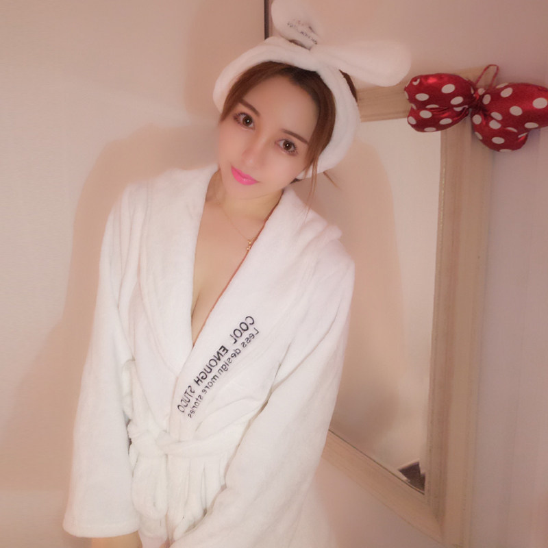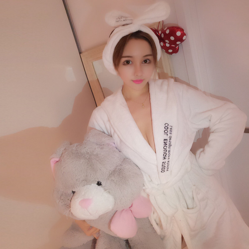 Pajamas Woman Autumn Winter Flannel Net Red Sexy Plus Suede Thickened Long Version Coral Suede Warm Sleeping Robe Bathrobe Spring Autumn
