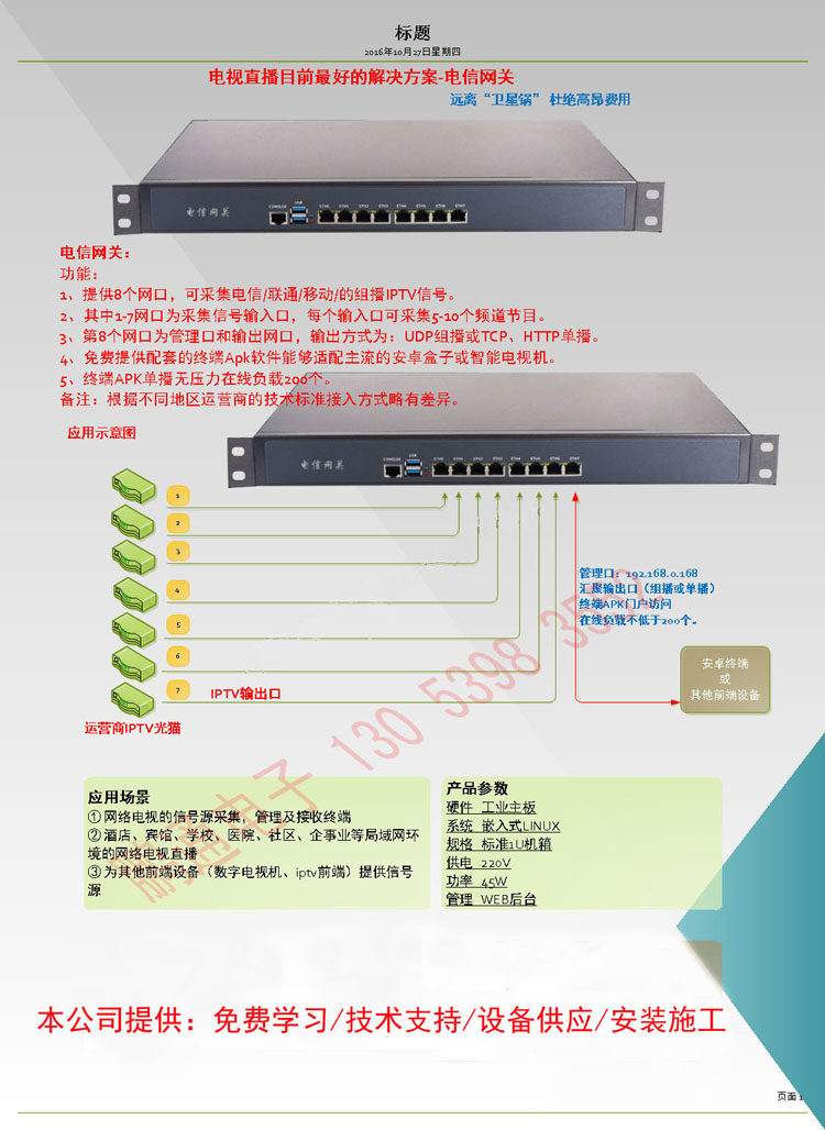 Hotel IPTV Digital TV System Gateway Intelligent Hotel Interactive TV Modulator Network Wiring