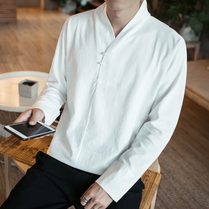 Chinese Tang clothing improved Hanfu Chinese style men's clothing Lay Shi retro shirt Spring and Autumn national clothing youth long sleeve