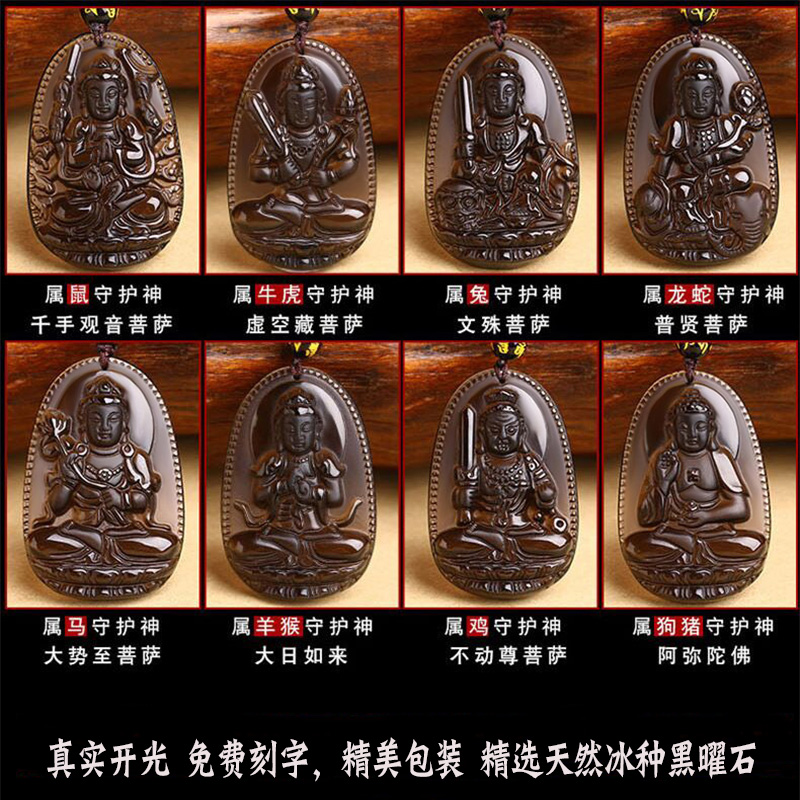 Natal Buddha Pendant Ice Species Black Yaoshi Necklace Male Day Nyorai Pendant Monkey Obsidian Peace and Happiness Amulet