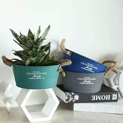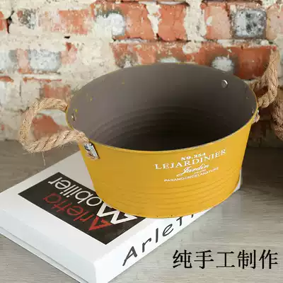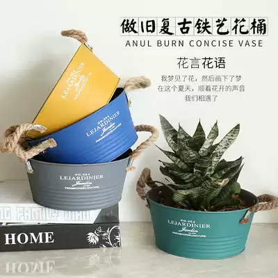 Retro wrought iron flower barrel balcony creative green plant personality interior decoration potted succulent combination hanging basket Golden ge flower pot
