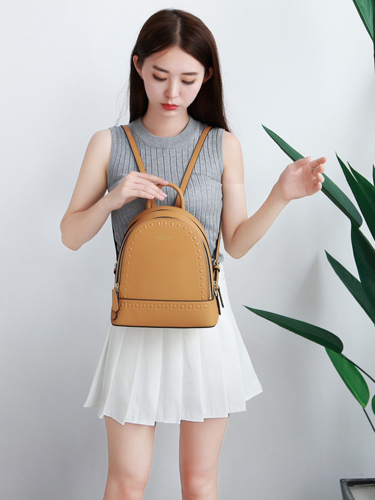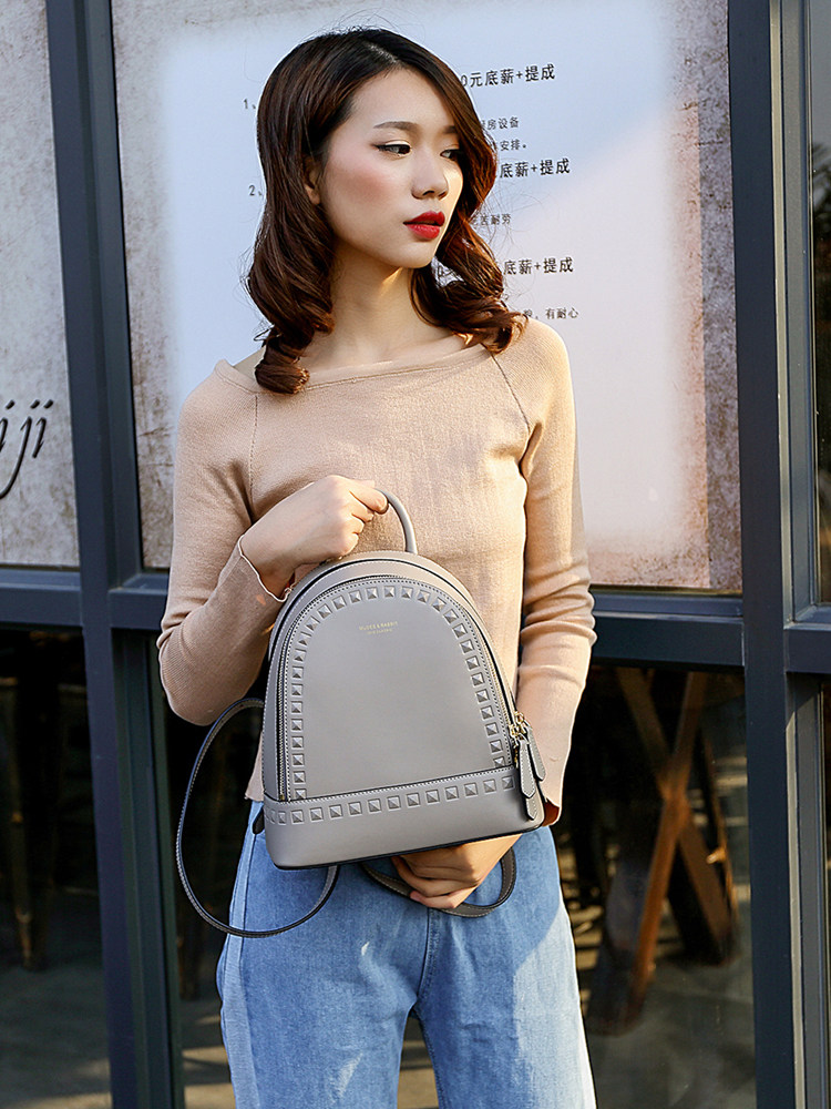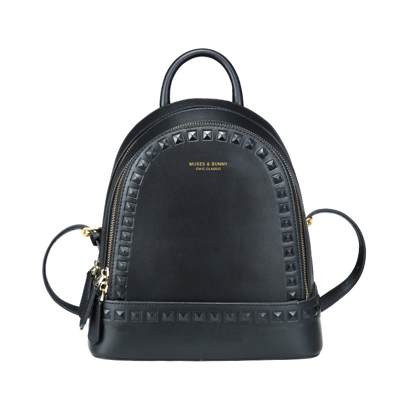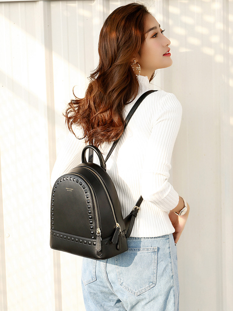 MUSESTU leather back backpack 2021 new rivet cowhide backpack ins simple style academic women's bag tide