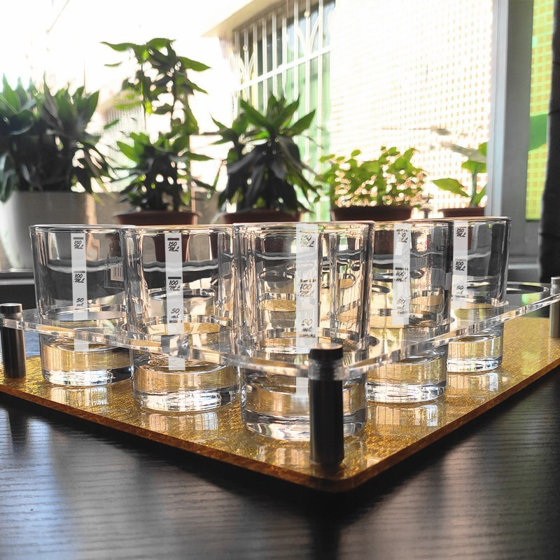 12 small square (2 frosted scale) Two-steel-tempered Quartet (2 frosted scale) 70ml small square cup (6 scale) 110ml Tempered Thickened Quadrilateral Cup (10 only) 2-2