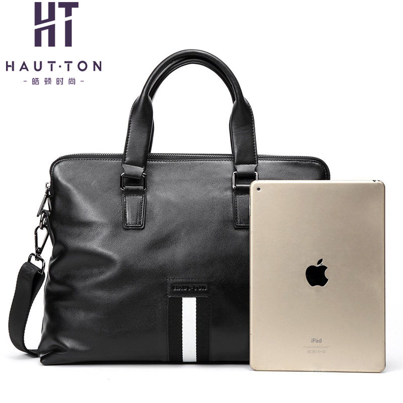 Haunton Handbag Man Genuine Leather Cross Section Single Shoulder Bag Soft Leather Diagonal Satchel Business Double Pull Chain Briefcase Bull Leather Men's Bag