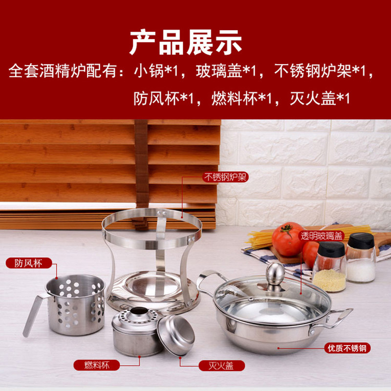 Jumao Alcohol Stove Small Hot Pot Household Pot Restaurant Dry Pot Set Single One Person Dormitory Solid Alcohol Pot