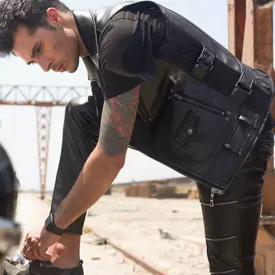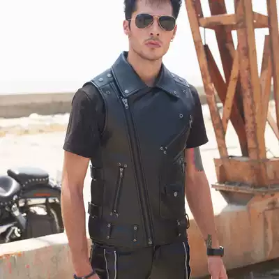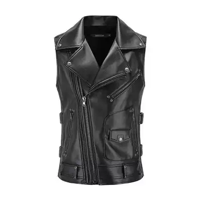 2020 new men's locomotive leather vest Korean version of slim Harley youth shoulder locomotive horse clip trend handsome