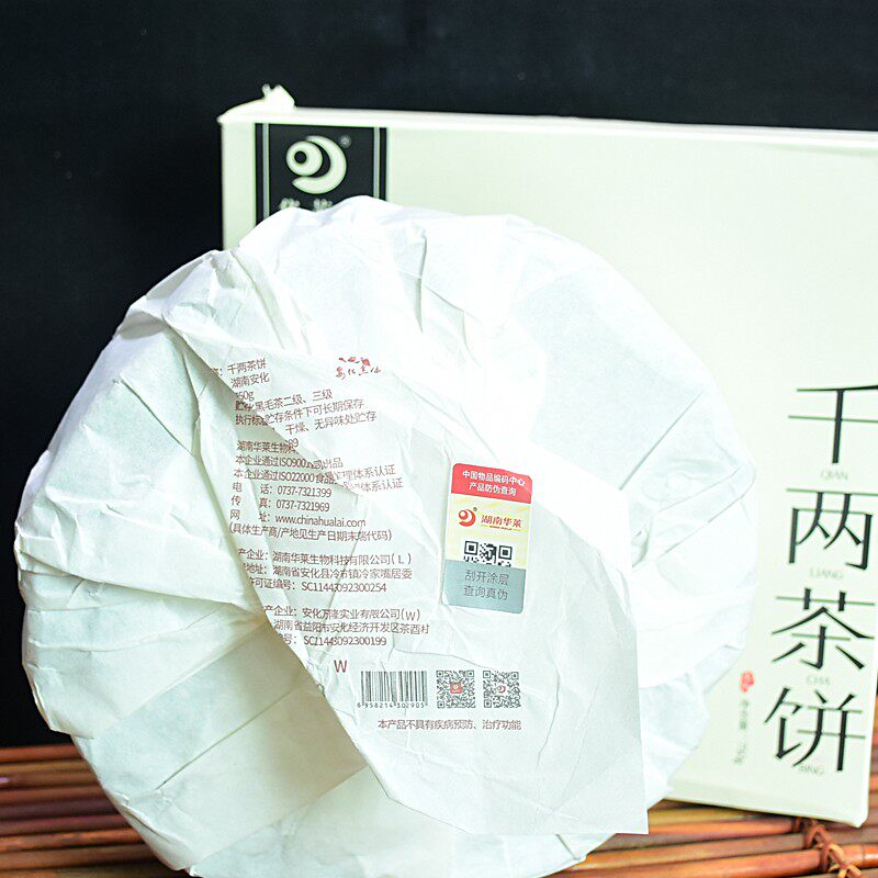 Hunan Anhua dark tea Hualai Jianqianliang tea cake 750g authentic origin raw material mellow golden flower flower roll tea