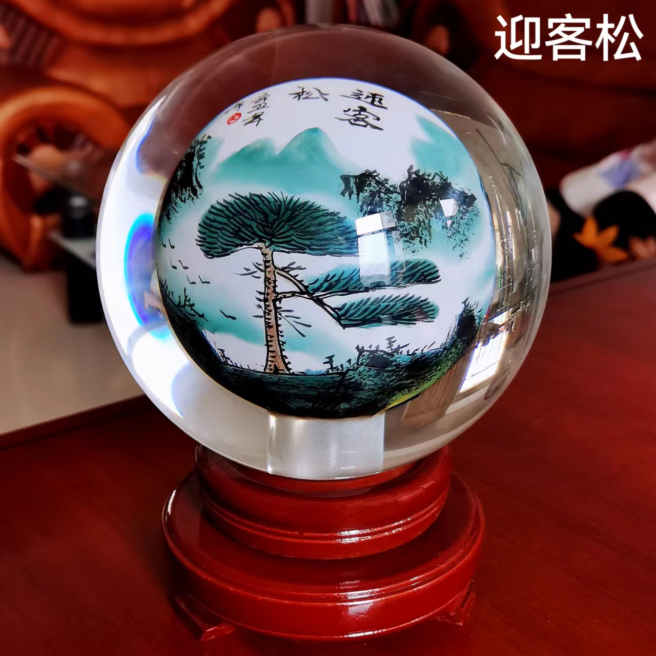Crystal inner painting ball peony flower welcome Songma to success, smooth sailing every year, fish home office decoration