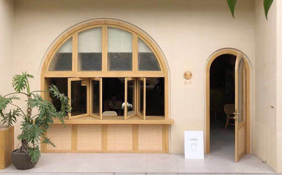 Vaulted doors and windows Zhangzi pine logs Nordic light and luxurious round doors and windows solid wood wood waxed oil furniture tooling photographic cloth view